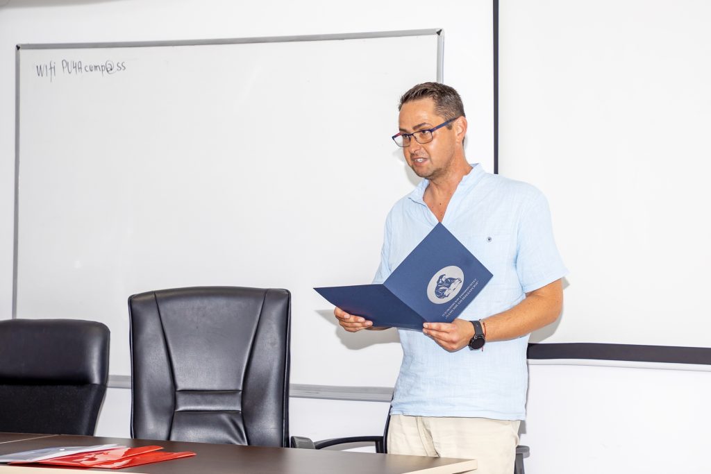 От 9 до 11.07.2025 г. в зала „Компас“ се проведе практикум на тема: „Стратегии за четене в дигиталния свят“. Доц. д-р Борян Янев, заместник-ректор по Международна дейност и връзки с обществеността на ПУ „Паисий Хилендарски“ и член на екипа на университета в националната научна програма приветства участниците от името на ректора проф. д-р Румен Младенов.