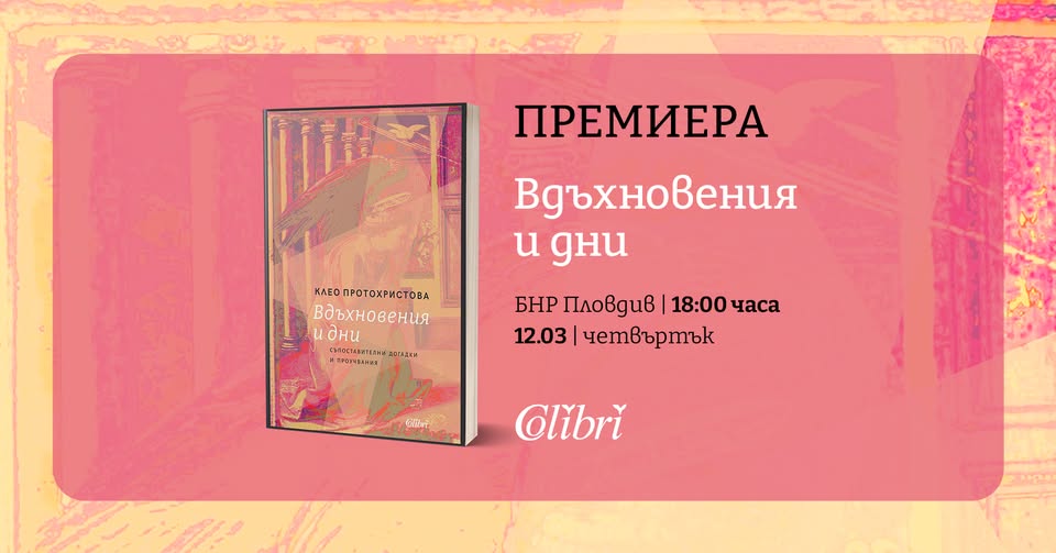 Уважаеми колеги, заповядайте на представянето на новата книга на проф. д.ф.н. Клео Протохристова „Вдъхновения и дни“, коeто ще се състои в четвъртък 12.03.2026 г. от 18.00 часа в сградата на радио Пловдив.
