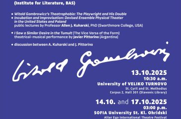 ВИТОЛД ГОМБРОВИЧ БЕЗ ГРАНИЦИ (лекции, пърформанс, разговор) Витолд Гомбрович (1904–1969): световен писател и драматург от ХХ […]